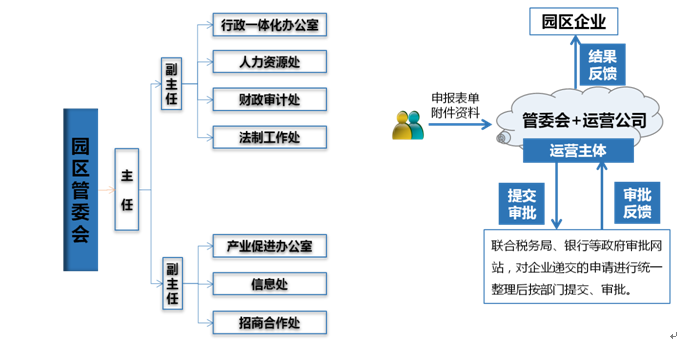 由區(qū)工商管理局牽頭組建園區(qū)管委會,與運營公司共同構成運營主體